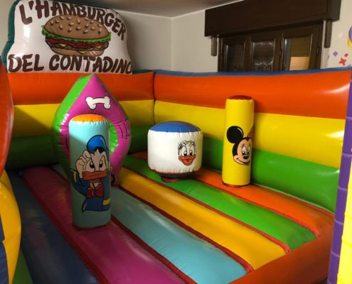 L’hamburger del contadino è fornito di un’apposito spazio dove far divertire i tuoi bambini ! Trascorri una serata in tranquillità, goditi il tuo fantastico Hamburger mentre i bambini si divertono con tantissimi giochi fatti apposta per loro ! All’aperto d’estate nei giorni più caldi e al chiuso d’inverno e con il brutto tempo!